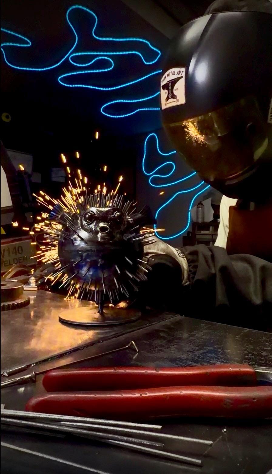 Hand-formed details: Every spine, fin, and feature is carefully shaped and welded to capture the pufferfish's distinctive character
